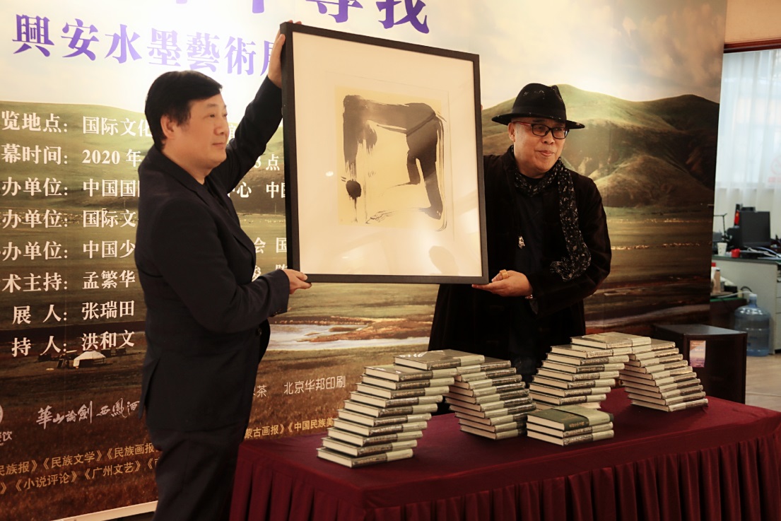 1月10日,由中国国际文化交流中心、中国当代文学研究会、时代文艺出版社、中国作协书画院主办,由中国少数民族美术促进会、国立书画院协办的“在碎片中寻找——兴安水墨艺术展暨新书首发式”在国际文化交流艺术馆隆重举行。中国作家协会副主席、党组成员阎晶明,中国国际文化交流中心秘书长许红海,全国政协常委、中国作家协会副主席、北京作家协会主席刘恒,中国作协书画院院长王巨才,中国国际文化交流中心“一带一路”文化艺术基金管委会主任陈君,中国作家协会主席团委员、中国散文学会副会长叶梅,中国当代文学研究会副会长、沈阳师范大学特聘教授贺绍俊,中国作家协会办公厅主任李一鸣、中国当代文学研究会副会长兼秘书长、中国社科院文学研究所研究员陈福民、时代文艺出版社社长陈琛,北京师范大学特聘教授、诗人西川,河北省作家协会主席关仁山,鲁迅文学院常务副院长徐可,中国国际文化交流中心副秘书长王学珺,作家出版社原总编辑黄宾堂,内蒙古美术家协会副主席、内蒙古艺术学院教授苏茹娅,中国少数民族美术促进会名誉会长郭正英,中国作协书画院常务副院长张瑞田,青岛华夏文化艺术研究院院长杨志鹏,北京市民族联谊会秘书长张学斌,北京航天航空大学文化与艺术传播研究院院长蔡劲松,中国民族画院副院长李辉,北京正视文化有限公司总经理闫志杰,内蒙古作家协会名誉主席邓九刚,诗刊编委、画家宗鄂,中国化工作家协会副主席赵晏彪,内蒙古艺术学院副教授孙玉宝,中国作家协会创联部民族处处长陈涛,中国煤矿作家协会常务副主席徐迅,《小说选刊》编辑部主任顾建平,人民文学出版社《新文学史料》主编郭娟,《北京晚报》墨缘版主编郭晋丽,《人民美术家》主编韩慧萍以及作家、艺术家、新闻媒体金红伟、老村、敢夫、巴义尔、李丽香、任月华、刘以林、车前子、林金荣、曹心源、西蒙、刘豫华、程青、朱智忠、王炬、吾要、宝贵敏、骆庆、萱萱、张健、乌云格日勒、陈薇、杨鸥、王晓君、贺鹏飞、化方、谢树峰、金春姬、那日松、潘海波、高领、曙光、华小克、张晓智、杨晶、徐彬、于立方、肖宁、特木尔、若然、吕玲、刘奎章、祝雪侠、孙小野、王贺东、丁奔亮、宋辰辰、商晓艺、赵云等近百人。