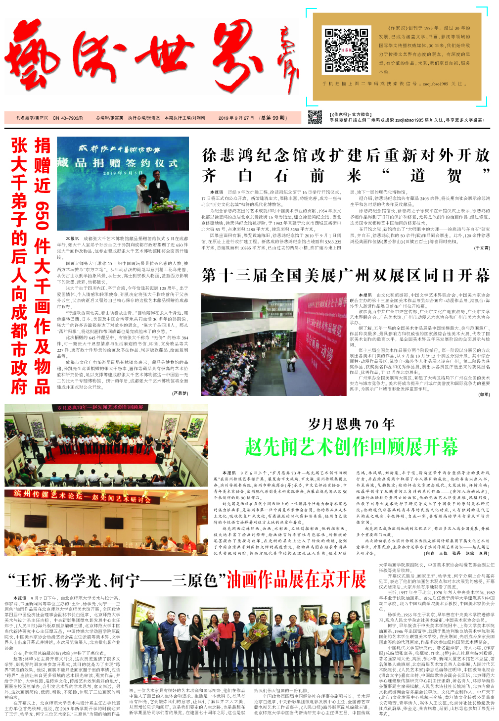 2019.9.27 作家报《艺术世界》(总第99期) 2020-02-05 华文作家网华文作家网,作家报 免责声明:文章内容不代表华文作家网_作家报立场,华文作家网_作家报不对其内容的真实性、完整性、准确性给予任何担保、暗示和承诺,仅供读者参考,文章版权归原作者所有。如本文内容影响到您的合法权益(内容、图片等),请及时联系华文作家网_作家报,我们会及时删除处理。