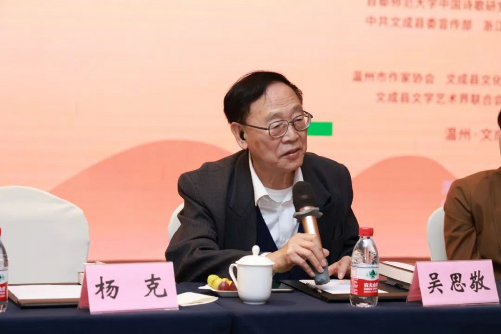 10月29日上午,“文化乡愁与现代书写诗歌论坛暨慕白作品研讨会”在文成举行。首师大教授、著名评论家吴思敬,中国诗歌学会会长杨克,中国作协诗歌创作委员会原主任、《诗刊》原主编叶延滨,《诗刊》社副主编霍俊明,中国诗歌网总编金石开,天津社会科学院研究员、博士王士强,东南大学人文学院教授、博士生导师王珂,县委常委、宣传部部长项缪,以及40多位来自全国各地的知名学者、诗人、评论家参加会议。