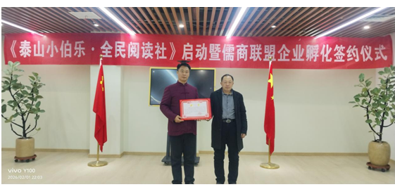 本网讯 (《作家报》记者李法明特约记者赵玉栋 刘建报道)为贯彻落实国务院第73次常务会议颁布的《全民阅读促进条例》于2026年2月1日起施行,条例施行当天由山东小伯乐文化传媒有限公司、济南市阅读协会、山东省现代体验经济研究院主办,济南中泰和文化科技有限公司负责承办的“泰山小伯乐·全民阅读社”文化活动在泉城济南启动。