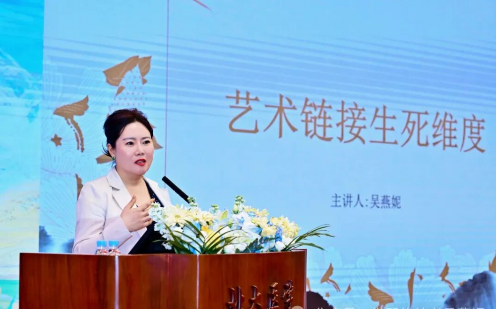 著名文化学者,中国作协会员,艺术评论家,燕妮诗酒艺术馆馆长吴燕妮女士发表了题为“艺术链接生死维度”的演讲。她提出艺术对死亡的呈现,从来都不是为了恐吓我们,而是为了告诉我们:死亡不是生命的终点,而是整体生命的一部分,是循环往复中不可或缺的一环。
